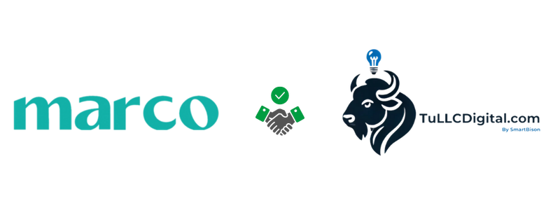 *Socio bancario americano; Aunque contamos con un acuerdo de colaboración con nuestro socio bancario, la decisión final de aprobación siempre dependerá exclusivamente de la entidad bajo umbrales de cumplimiento, volúmenes y depósitos mínimos. Smart Bison LLC no es proveedor del servicio bancario, sino un intermediario que facilita el proceso, sin poder garantizar el resultado final de dicha solicitud.